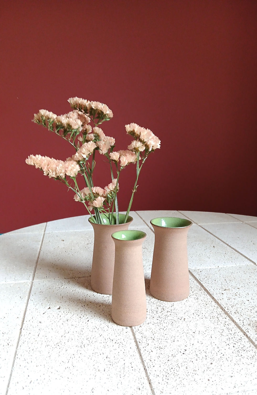 Une sélection unique de vases en grès roux ou blancs et de soliflores en porcelaine.